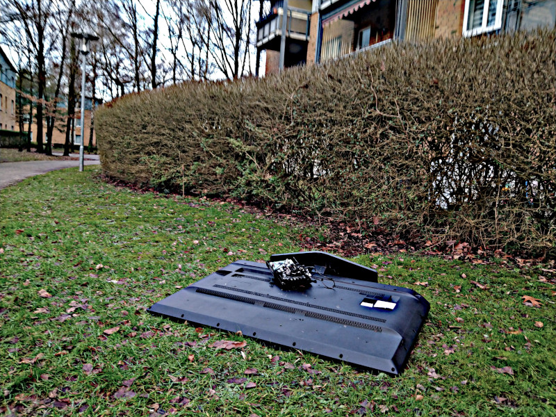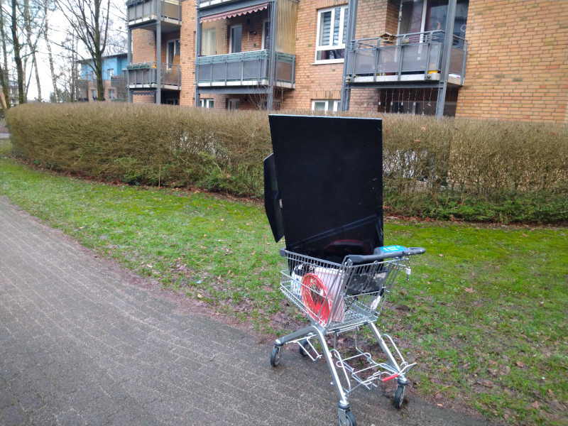 Zusätzlich zu Sperrmüll wird auch gerne Elektroschrott abgelegt. Dieser wird allerdings gar nicht abgeholt. Eigentlich müssen sich die Eigentümer um die Beseitigung kümmern. Doch zum Beispiel bei den Wohnungsunternehmen wie der Vonovia kann das lange dauern. Ich kann es nicht verstehen, wenn Menschen ihren kaputten Fernseher nicht direkt zum Wertstoffhof bringen. Das ist von Vorwerk ein Spaziergang von vielleicht zehn Minuten. Und es ist kostenlos. Mit einem Einkaufswagen, der ebenfalls weit entfernt vom Supermarkt stand, habe ich am 22.01. einen Fernseher und einige weitere Teile zum Wertstoffhof transportiert. Und ich bin dabei mit einigen Menschen ins Gespräch gekommen über das Problem.